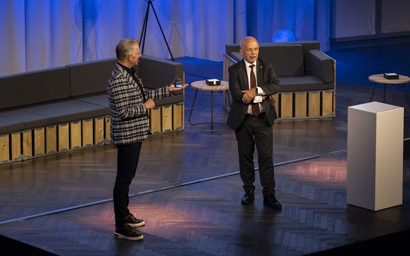 Kevin Kunz, CEO Kursaal Bern, dankte seinen Mitarbeitenden auf der Bühne für ihren Durchhaltewillen – und vergoss dabei eine Träne, so sehr war er gerührt. (htr/slb)