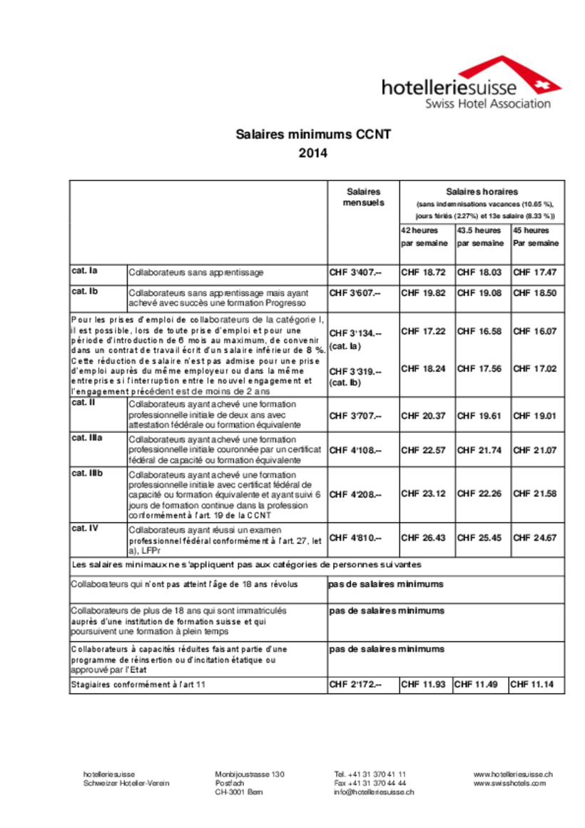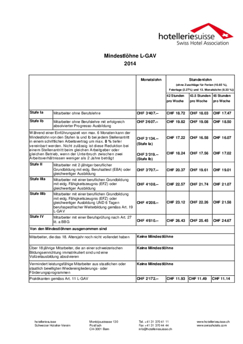 Die Sozialpartner des L-GAV für das Gastgewerbe (hotelleriesuisse, Gastrosuisse, SCA Swiss Catering Association, Hotel & Gastro Union, Unia, Syna) haben in den Lohnverhandlungen des letzten Jahres festgelegt, dass die Mindestlöhne per 1. Januar 2014 um die durchschnittliche Jahresteuerung der Jahre 2009 bis 2012 angepasst werden.
