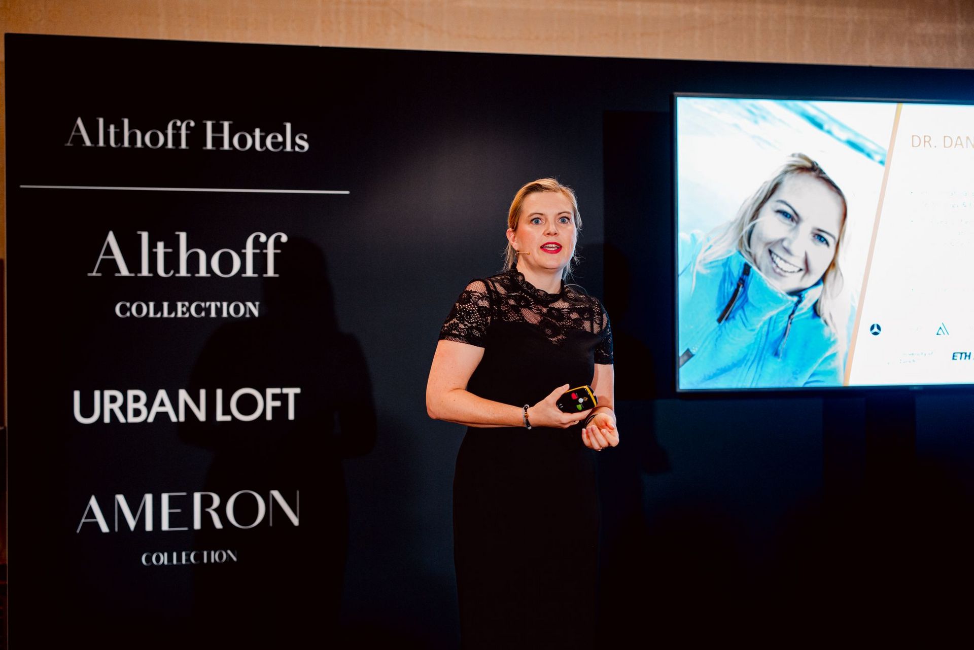 Im Zuge der Althoff-Vorstellung gab es zwei Keynotes. Den Anfang machte Frank Hörl mit einer Rede zur Nachhaltigkeit von Events. Der deutsche Hotelier ist seit über 35 Jahren Gastgeber sowie Gründer der Firma Next Gen Hospitality, die sich auf die Prozessoptimierung nachhaltiger Hotellerie spezialisiert. Ausserdem ist der Hörl Auditor für das renommierte Greensign Institut, welches die Nachhaltigkeit der Althoff-Hotels begutachtete.