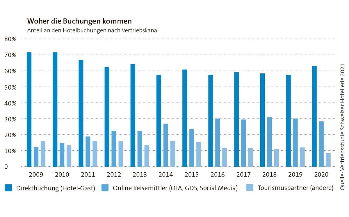 Ob die Branche die Pandemie genutzt hat, um in Sachen Digitalisierung vorwärtszukommen, wird je nach Quelle anders beurteilt: Während HotellerieSuisse letzten Frühling eine Medienmitteilung mit dem Titel «Schweizer Hotels nutzen Krise für Digitalisierungsschub» verschickt hat, bewertet der vom Staatssekretariat für Wirtschaft (Seco) in Auftrag gegebene Progress Report «Digitalisierung im Schweizer Tourismus» die Fortschritte kritischer. Im Jahr 2020 seien etliche touristische Digitalisierungsprojekte aufgrund anderer Prioritäten ins Stocken geraten.