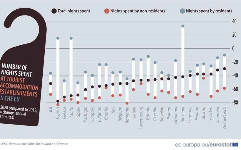Während Inländer im EU-Schnitt knapp 40 Prozent weniger Übernachtungen buchten, waren es bei Ausländern fast 70 Prozent innerhalb der EU. Lediglich in Zypern, Malta und Slowenien buchten Inländer 2020 mehr Übernachtungen als 2019, wobei dies den Rückgang der ausländischen Touristen bei Weitem nicht ausgeglichen hat. (awp/sda/dpa)