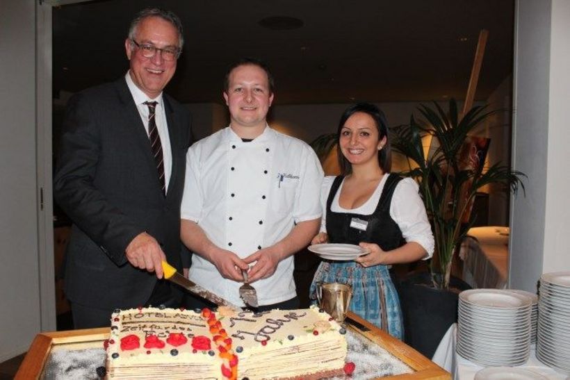 Apropos Essen: Für den Jubiläumsabend hat sich Reinhardt eine besondere kulinarische Überraschung ausgedacht. Fünf ehemalige Küchenchefs des «Adula» durften je einen Gang kreieren. Das Dessertbuffet von Käse, Caramelköpfli bis Schokoladenmousse – inklusive Geburtstagskuchen – bereitete der mit 15-Gault-Millau-Punkten gekrönte aktuelle Küchenchef, Jens Kalkbrenner, zu. Den Gästen hat es geschmeckt. Von allen Seiten gab es Komplimente.