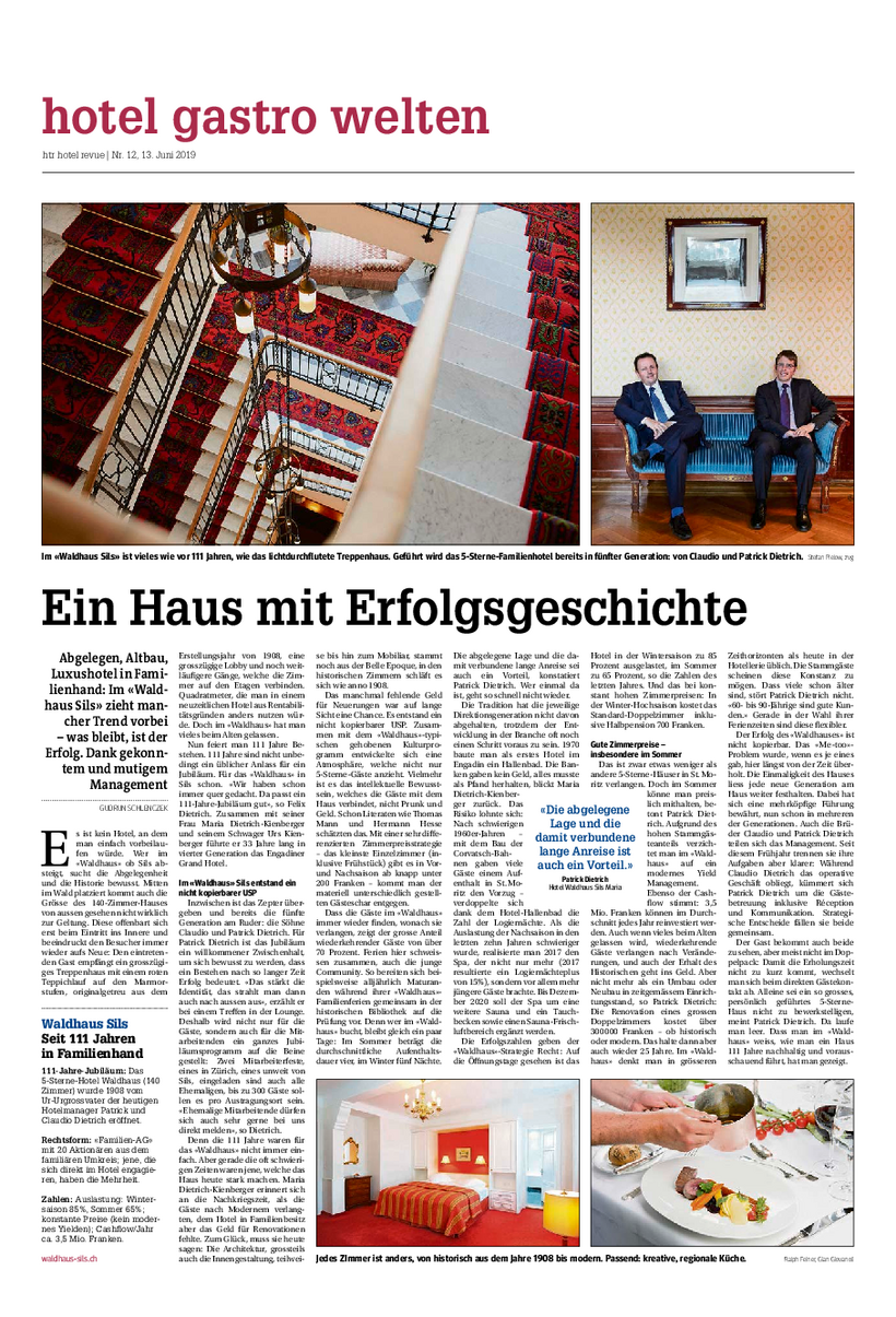Lesen Sie dazu auch den in der htr hotel revue vom 13. Juni 2019 erschienenen Beitrag «Ein Haus mit Erfolgsgeschichte».