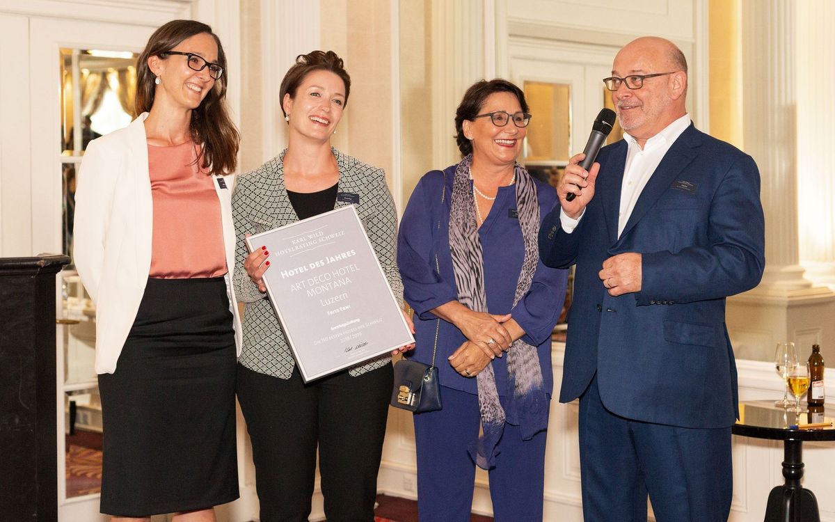 Die sechsköpfige Fachjury mit Jürg Schmid, ehemaliger Direktor Schweiz Tourismus, Silvia Affolter, Unternehmerin und TV-Journalistin, Karl Wild, Fachpublizist und Buchautor, Hans Amrein, Fachjournalist, Gery Nievergelt, Chefredaktor der htr hotel revue und Christoph Ammann, Leiter Ressort Reisen der Sonntagszeitung, kürte am 28. Mai im «Baur au Lac» in Zürich das Art Deco Hotel Montana in Luzern unter der Direkton von Fritz Erni zum «Hotel des Jahres 2018».
