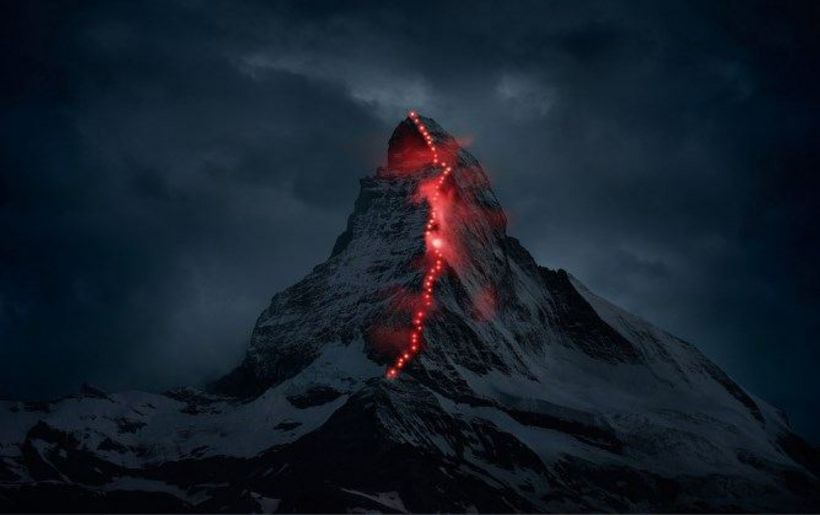 Ebenfalls als bestes Schweizer PR-Bild wurde die Fotografie von Robert Bösch ausgezeichnet. Für den Bergsportspezialisten Mammut setzte er das Matterhorn in Szene. Die Erstbesteigung des Schweizer Wahrzeichens jährt sich heuer zum 150. Mal. Anlässlich des Jubiläums zeichnete der Outdoor-Spezialist zusammen mit Bergführern aus Zermatt in einer Lichterkette die Route über den Hörnligrat nach. Er erwies damit den Erstbesteigern um Edward Wymper die Ehre. Das Bild dieser Inszenierung gewann auch in der Kategorie Unternehmenskommunikation.