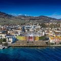 Zurzeit wird das Metallgerüst der Arena mit bunten Leinwänden umhüllt und erhält so ihr endgültiges Antlitz. Rot, Gelb, Grün und Braun – in den Farben der Weinreben. So wird sich das Bauwerk vom 18. Juli bis 11. August den rund 800'000 erwarteten Besuchern des Winzerfests präsentieren.