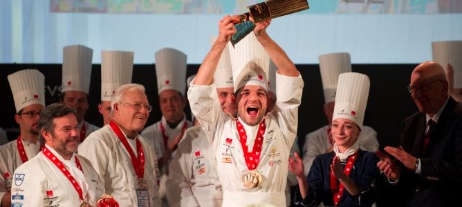 Devant un parterre de personnalités du monde de la gastronomie, de passionnés, de curieux et au terme d’une journée riche en émotions et en suspens, Cédric Agnellet, 29 ans, second de cuisine au restaurant d’entreprise Patek Philippe Compass Group à Genève a remporté ce premier titre devant Elie Trumeau, 33 ans, chef de partie banquet à l’Hôtel Président Wilson à Genève et Grégory Halgand, 37 ans, chef adjoint à l’Hôtel Chalet Royalp à Villars-sur-Ollon. Le prix du public a également été attribué à Cédric Agnellet. Alors que le prix du meilleur commis a été remis à Cécile Panchaud.