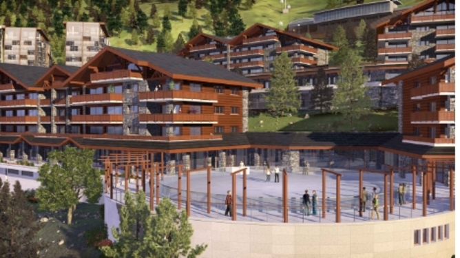 Couvrant une parcelle de plus de 52 000 mètres carrés, cette zone constitue «le cœur du projet» qui représente environ 250 millions de francs. Elle comprend 15 bâtiments «de style traditionnel valaisan», selon les termes de l'investisseur. Elles comporteront 315 chambres ainsi que des bars, des restaurants, des spas et une zone commerciale et de divertissement. Le tout dans un luxe visant le cinq étoiles.