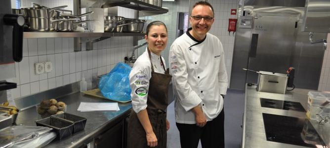 Im Rahmen der Vorbereitungen finden auch fünf praktische Trainingseinheiten statt. So kamen am vergangenen Dienstag in den Räumlichkeiten Hotel & Gastro Formation in Weggis geladenen Gäste in den Genuss einer ersten Probe. Unter scharfer Beobachtung ihrer Coaches bereitete Evelyne Tanner ein 4-Gang-Menu für sechs Personen zu, das Tatjana Caviezel anlässlich eines Banketts servierte. (htr/npa)