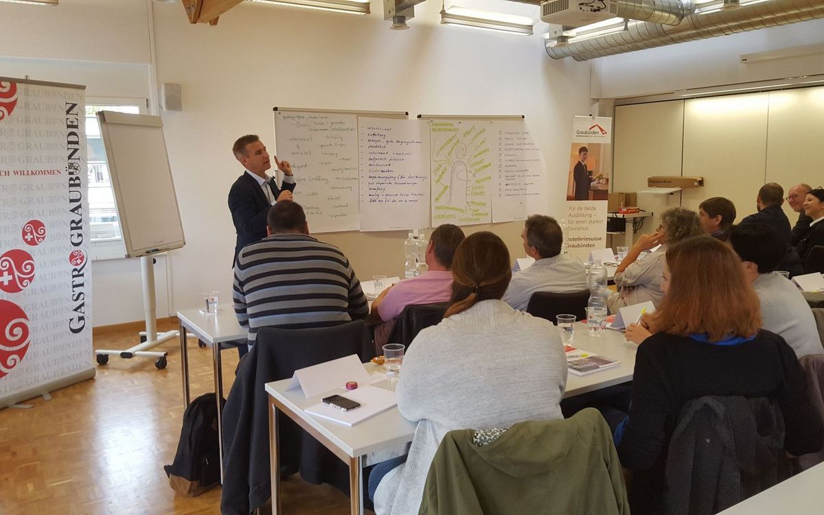 Mit einem Info-Anlass kombiniert mit dem Einstiegskurs für Ausbildungsbetriebe beziehungsweise Berufsbildner starteten am Dienstag GastroGraubünden und HotellerieSuisse Graubünden die Zusammenarbeit mit Top-Ausbildungsbetrieb, ein nationales Unterstützungs- und Auszeichnungssystem, das zur Attraktivität der gewerblichen Berufe beiträgt.