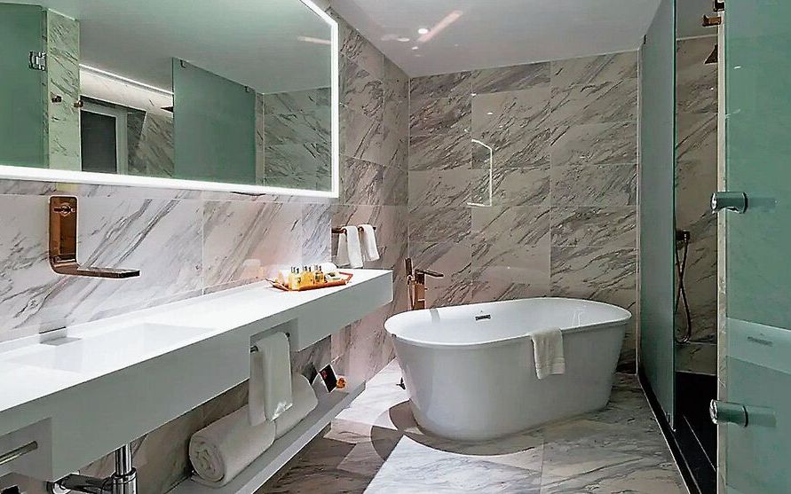 «Darüber hinaus ist Krion leicht zu reparieren, unkompliziert zu reinigen und wartungsarm», heisst es bei Porcelanosa. «Das Mineralgemisch kann im warmen Zustand neu komponiert werden; so können wir Schäden und Unreinheiten ausbessern, was es möglich macht, den Ursprungszustand auch bei starker Beanspruchung lange zu erhalten», erläutert Strohhammer. Rossoblu als Partner von HotellerieSuisse bietet deren Mitgliedsbetrieben während zweier Jahre nach der Installation neuer Bäder einen kostenlosen Reparaturservice an.