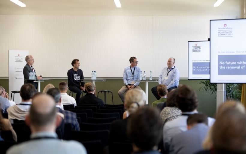 HotellerieSuisse-Direktor Claude Meier moderiert die Podiumsdiskussion zu Future Hospitality: Fachkräfte in der Branche halten. HotellerieSuisse-Direktor Claude Meier moderiert die Podiumsdiskussion zu Future Hospitality: Fachkräfte in der Branche halten. Bild: Corinne Glanzmann/Nadia Schärli/Philipp Schmidli
