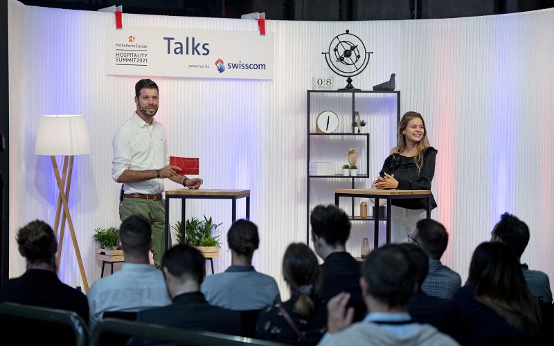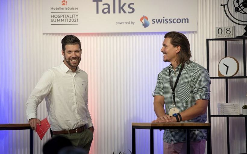 Roman Hartmann, Co-CEO & Founder von Farmy (r.), steht Patric Schönberg, Leiter Kommunikation HotellerieSuisse, im Talk powered by Swisscom, Rede und Antwort. Roman Hartmann, Co-CEO & Founder von Farmy (r.), steht Patric Schönberg, Leiter Kommunikation HotellerieSuisse, im Talk powered by Swisscom, Rede und Antwort. Bild: Corinne Glanzmann/Nadia Schärli/Philipp Schmidli