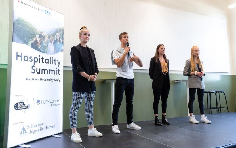 Break-Out-Session zu «Wie packen es die Jungen an?»: Teilnehmende des NextGen. Hospitality Camps praesentieren ihre Arbeit Break-Out-Session zu «Wie packen es die Jungen an?»: Teilnehmende des NextGen. Hospitality Camps praesentieren ihre Arbeit Bild: Corinne Glanzmann/Nadia Schärli/Philipp Schmidli