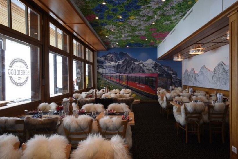 Ein Meer von Alpenblumen leuchtet von der Raumdecke, im Hintergrund ziert die Jungfraubahn das übergrosse Wandbild mit Eiger, Mönch und Jungfrau. Die mit Fell dekorierten Stühle laden zum Verweilen in der alpinen Traumwelt der Jungfraustube ein. Freunde der Jungfrau Region kommen nebenan in der Mönchstube auf ihre Rechnung, welche «urchig» traditionell mit Eckbänken gestaltet ist. An den Holzwänden hängen alte Plakate aus der Region. Eine Zeitreise in die Jugendstilepoche erlaubt die Eigerstube mit authentischem Inventar aus der Wendezeit des 19. ins 20. Jahrhundert.