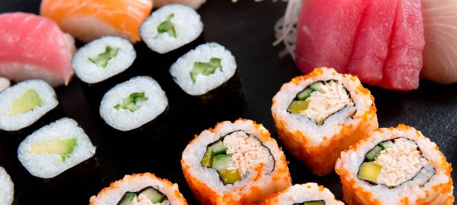 Jede eingehende Bestellung bereitet Sushi-Koch Dong Xu frisch zu. Angeboten werden die klassischen Sushi-Sorten Maki, Sashimi, Nigiri und Ura-Maki ebenso wie California Rolls und sogenannte Inside-Out-Rolls. Fisch-Fans und Vegetarier haben dabei die Qual der Wahl: Neben Thunfisch aus dem Pazifik, Lachs oder Shrimps werden auch Gurke und Avocado verwendet. Das Tagesangebot umfasst wechselnd eine weitere japanische Sushi-Spezialität aus saisonalen Zutaten.