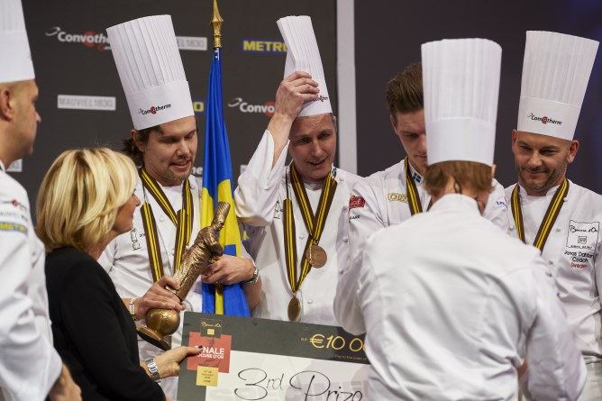 Die bronzene Trophäe ging dieses Jahr an das schwedische Team mit Tommy Myllymäki und Commis Albin Edberg. Der Chefkoch des Restaurants Sjön in Jönköping war bereits beim Bocuse d'Or 2011 dabei und gewann mit dem Team die Silbermedaille. 2014 holte er in Stockholm für Schweden den Sieg beim Bocuse d'Or Europe.