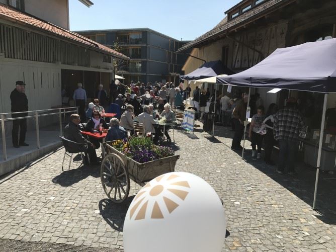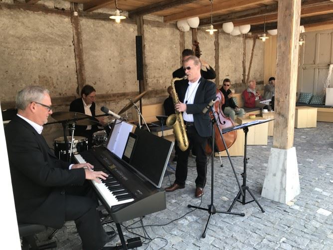 Viel Publikum zum Auftakt der «Schüür»Das Restaurant Schüür an der Bernstrasse in Steffisburg feierte gestern Samstag Eröffnung. Der Einladung zum Tag der offenen Schüür folgten über 1000 Besucher, welche kulinarisch wie auch kulturell verwöhnt wurden.Am Samstag lud die Burgergemeinde Thun zum Eröffnungsfest in die «Schüür · Restaurant & Kultur». Das Zusammenspiel von schönem Ambiente, Gastfreundschaft und kulinarischem Genuss wurde mit dem Tag der offenen Schüür erlebbar. Sichtlich zur Freude der zahlreich erschienen Besucher, die bei schönstem Wetter nicht nur das moderne Innere, sondern auch die grosszügige Gartenterasse mit Lounge entdeckten. Zum Verweilen wurde einiges geboten: Heimisches Essen und Trinken sowie beste Unterhaltung mit der «JazzSelection», die schwungvoll auf das Schüür-Kultur-Programm einstimmte. Bis im November werden an ausgewählten Donnerstagabenden musikalische und komödiantische Leckerbissen geboten – allen voran am 27. April die Full Steam Jazzband aus der Thunersee-Region.365 Tage offen – neu auch abends«Der heutige Publikumsaufmarsch übertraf bei weitem unsere Erwartungen und wir hoffen, dass uns nach der gelungenen Eröffnung viele wieder besuchen werden», sagte Geschäftsführer Peter Escher. Denn neu ist das Restaurant auch abends von Dienstag bis Samstag geöffnet und bietet eine feine Auswahl an saisonalen à la Carte-Menüs mit regionalen Zutaten. Die neuen Räume bieten auch viel Gestaltungsraum für Veranstaltungen aller Art. «Mitten im Rohbau haben wir die erste Reservation für eine Hochzeitsfeier im Mai erhalten, eine zweite liegt auch schon auf dem Tisch», verrät Gastgeberin Susanne Röthlisberger und hofft, dass nach dem Tag der offenen Schüür weitere Interessierte anklopfen werden.