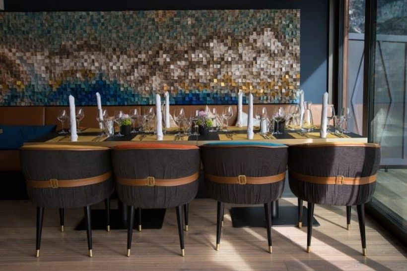 Die 150-jährige Tradition und die Geschichte des Gletschers sowie des Eisabbaus widerspiegeln sich in der Innenarchitektur in Form und Farben. Das neue Hotel Glacier steht auf historischen Fundamentmauern, ergänzt mit zeitgemässer Architektur. Die Gäste werden im wunderschönen Bergambiente überrascht von einer zeitgenössischen nachhaltigen Designwelt aus natürlichen Materialien wie Stein und Holz, zugeschnitten in moderne Formen und eingerahmt mit einer filigranen Linie Gold. Die Innenarchitektin Francesca Alder hat es verstanden, die Geschichte des Hotels und des Eisabbaus in der Einrichtung bis ins kleinste Detail einzuarbeiten und dies perfekt mit einer harmonischen Ambiance und höchstem Komfort zu verbinden. Das Resultat ist ein Design, das eine Symbiose von Holz, Gestein, grosszügigen Lichtquellen und gekonnt ausgewählten Farbelementen bildet.