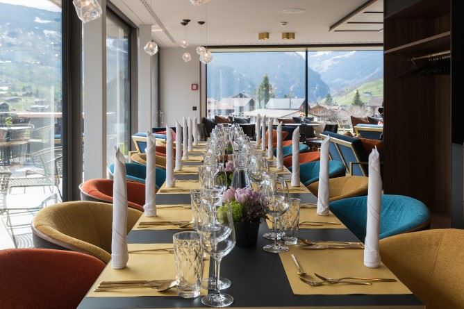 Die Küche steht unter der Leitung von Jonas Messer, der in Grindelwald aufgewachsen ist. Seine Küche ist inspiriert von der Liebe zum Reisen und seiner grossen Neugierde. Jonas Messer und sein Team zaubern Kreationen, die im Einklang mit saisonalen und regionalen Frischprodukten überraschende Gaumenfreuden entstehen lassen. Justine und Jan Pyott arbeiten insgesamt mit einem Team von 14 Mitarbeitenden. (htr/og)