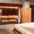 Herzstück des Entspannungsbereichs sind eine finnische Sauna und eine Infrarot-Kabine, die als ästhetisches und funktionales Duo auftreten. Raumhohe Fronten aus Grauglas, Erlenholz im patentierten Stabdesign und grosszügige Liegeflächen schaffen eine klare, beruhigende Atmosphäre. Der für das ganze Gebäude charakteristische Naturstein Travertin zieht sich auch durch diesen Bereich und wird stimmig ergänzt durch vertikale Holzstäbe und indirektes Licht. Das Resultat ist ein Ort, der sowohl dem Designanspruch als auch der therapeutischen Wirkung gerecht wird – ideal eingebettet in ein Longevity-Konzept, das auf tiefgreifende Erholung setzt.