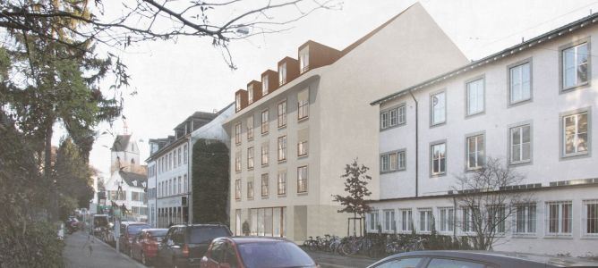 Durch die Totalsanierung wird das Gebäude am Leonhardsgraben neupositioniert. Die Fassadengestaltung werde sich mit ihrer klar strukturiertenFensteranordnung in die historische Umgebung einpassen, wie die Projektverantwortlichen weiter schreiben. Durch die gewähltenMaterialien und Farbgebung im Aussen- sowie Innenbereich fügt sich das Haus in den Kontext der Altstadt ein, und soll dadurch zu einem«selbstverständlichen Bestandteil des Leonhardsgrabens» werden.