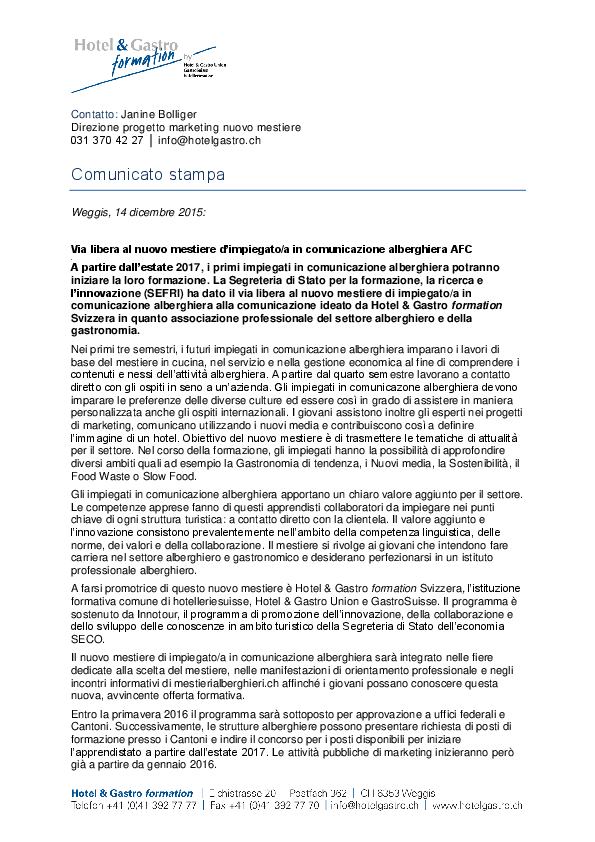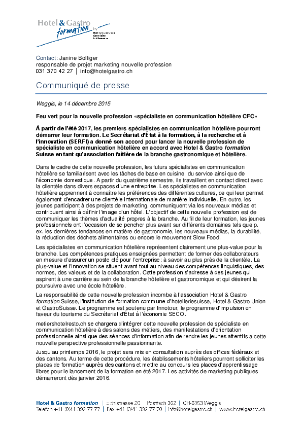 Der neue Beruf Hotel-Kommunikationsfachmann und –frau wird an Berufswahlmessen, Berufsorientierungen und Informationsanlässen von berufehotelgastro.ch integriert, um so die Jugendlichen auf diese neue spannende Ausbildung aufmerksam zu machen.