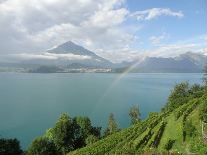 Am Rebberg Stampbach gedeihen 4 Aren Riesling-Sylvaner, 14 Aren Pinot Noir und 13 Aren Regent. Seit mehr als tausend Jahren ist der Rebbau am Thunersee urkundlich erwähnt. Während sich einst die Rebhänge hier ähnlich derjenigen am Bieler- oder Neuenburgersee zeigten, führte der Konkurrenzdruck durch Weine aus der Westschweiz und dem Burgund, sowie Pilz- und Schädlingsbefall (Mehltau-Reblaus), zum Verschwinden aller Reben aus der Region um den Thunersee.
