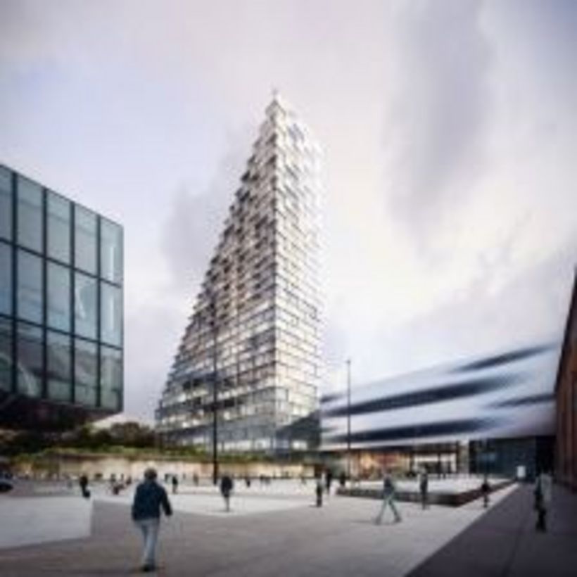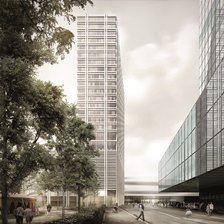 Konkret sehen Morger Dettli einen Parterre-Sockelbau mit grossem Dachgarten auf der ganzen Fläche des Parkhausareals vor. Darauf stünde ein schlanker, zurückstaffelnder 31-stöckiger Turm mit den Wohnungen zuoberst.