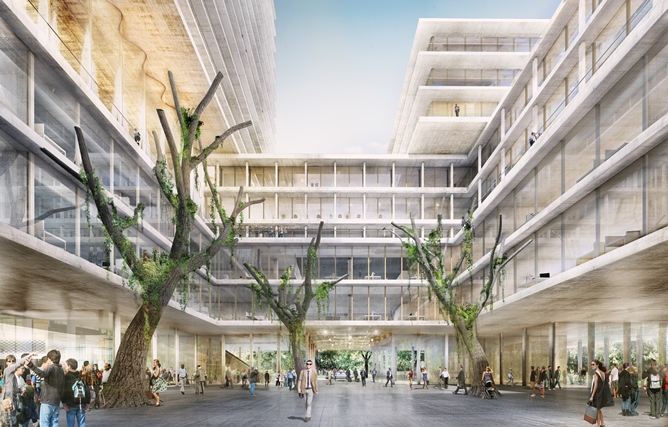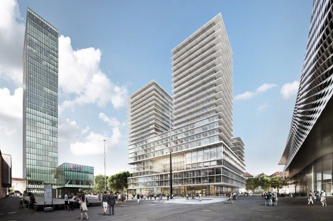 Als Parkhaus-Ersatz schlagen Herzog & de Meuron einen mehrgeschossigen Sockel-Ring vor, mit Innenhof und vier unterschiedlich hohen Türmen mit bis zu 23 Etagen. Auch der Claraturm stammt aus der Feder von Morger Dettli, der Messeturm von Morger + Degelo, die Passerellen-Halle von Herzog & de Meuron.