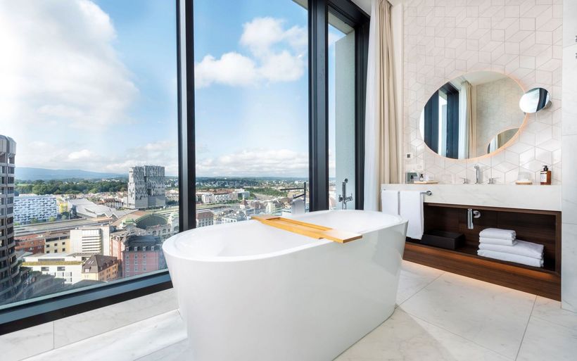[IMG 4]Das Interieur trägt dagegen die Handschrift des renommierten Designers Matteo Thun, der für die Gestaltung des insgesamt 19 Stockwerke umfassenden Hotels in engem Austausch mit Miller & Maranta stand. Gemäss Mitteilung steht des Interieur unter dem Motto Timeless Modern. Thun nutzte warme Farben und natürliche Materialien für einen Stilmix aus Schlichtheit und Komfort.