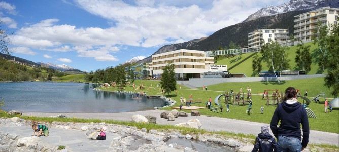 Auf dem Seeareal in Barnagn ist der Bau eines Erlebnisbads mit einem Hotel im 3-Sterne-Superior-Bereich mit rund 240 Betten geplant. Vom Gesamtinvestitionsvolumen entfallen rund 43 Mio. Franken auf Bad und Hotel, wie Patric Vincenz gegenüber htr.ch bestätigt. Das Hotel soll für Familien erschwinglich sein. Das Erlebnisbad umfasst verschiedene Innen- und Aussenschwimmbecken, eine grosse Wasserröhrenrutsche und einen grossen, modernen Wellnessbereich. Entstehen sollen auch Restaurationsbetriebe im Bad und Hotel.