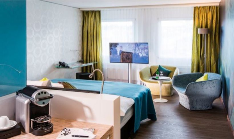 Den Abschluss des Millionenprojektes machen die nun komplett neu gestalteten insgesamt 79 Hotelzimmer sowie die Erneuerung der Nasszellen, die zwischen Ende Dezember 2014 bis Ende Februar 2015 umgebaut wurden. «Wir wollen unseren Gästen mehr als nur eine Übernachtungsmöglichkeit bieten», erklärt Hoteldirektor Thomas Steidle. «Wer bei uns logiert, erlebt eine Atmosphäre, die den Business-Alltag abfedert und die Gäste in die Welt der Kunst eintauchen lässt.»
