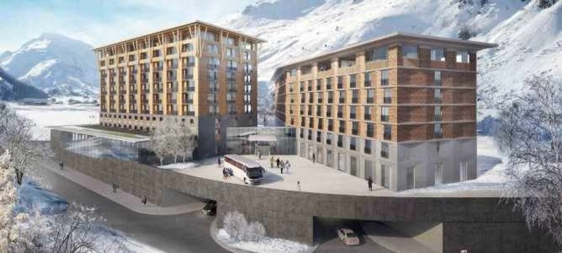 In diesen Tagen werden auch die zwei Apartmenthäuser «Wolf» und «Edelweiss» aufgerichtet. Der Baustart erfolgte im März 2016. Sie entstehen im Joint Venture mit der Schmid Gruppe, einer Zentralschweizer Gesamtdienstleisterin im Bau- und Immobilienbereich. Beide Häuser böten einen attraktiven Mix an Apartments sowie grosszügige Maisonette-Wohnungen auf zwei Etagen ab 395'000 Franken an, heisst es in einer Pressemitteilung. Mit der Fertigstellung dieser Apartmenthäuser, dem Radisson Blu Hotel und den Gotthard Residences entstehe im Andermatt Swiss Alps Resort ein Dorfplatz. (htr/pt)