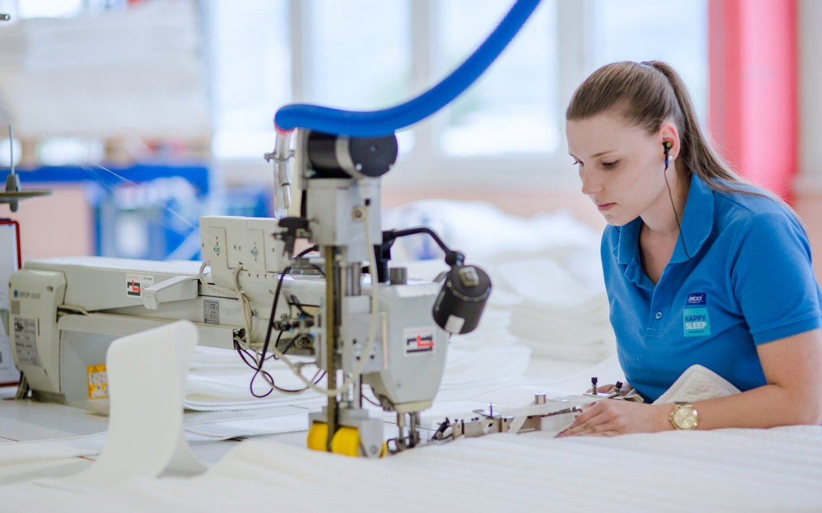 In Schänis, einem beschaulichen Dorf zwischen Zürichsee und Walensee, liegt ein Stück Schweizer Industrie: die Produktionsstätte von Bico, Teil der Hilding Anders Schweiz AG. In hohen Hallen geben Nähmaschinen mit rhythmischem Rattern den Takt an. Hier arbeiten die Näherinnen an massgefertigten Arbeitstischen an Matratzenhüllen. Bis alle Arbeitsschritte sitzen, vergehen Jahre. [RELATED]