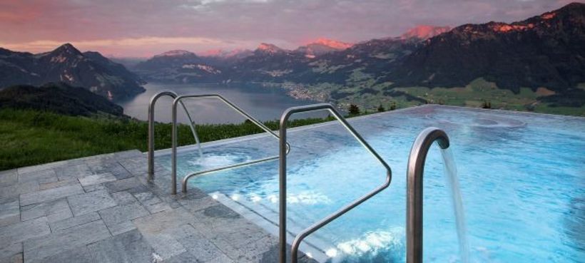 Als einziges der zehn Pool-Hotels, die das Reiseinformationsportal trivago.de vorstellt, befindet das Hotel Villa Honegg oberhalb von Ennetbürgen (NW) weit weg vom Meer. Dafür bietet das 5-Sterne-Superior-Haus hoch über dem Vierwaldstättersee seinen Gästen im beheizten Aussenpool (34 Grad) einen grosszügigen Panoramablick auf die Berge. Der Innenpool des 1905 erbauten Luxushotels auf 914 Metern über Meer verfügt über eine Gegenstromanlage sowie Unterwassermusik. Zur Ruhe und Entspannung dient das 45 Grad warme Dampfbad mit Crushed-Ice-Brunnen.