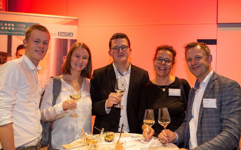 Vier Nachwuchskräfte bildeten das OK der diesjährigen Plattform. Sie sind zwischen 17 und 23 Jahren jung und gehören zu den begehrten Nachwuchstalenten: Colin Dudler vom Hotel Sedartis, Marija Lilic vom «Belvoirpark», Chiara Notter vom Radisson Blu Flughafen und Gianna Tinner vom «The Dolder Grand». Jörg Buckmann hat das Quartett bei der Organisation des Anlasses begleitet.