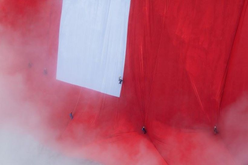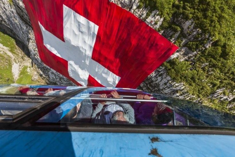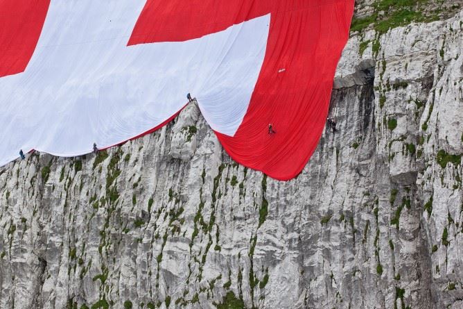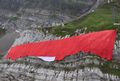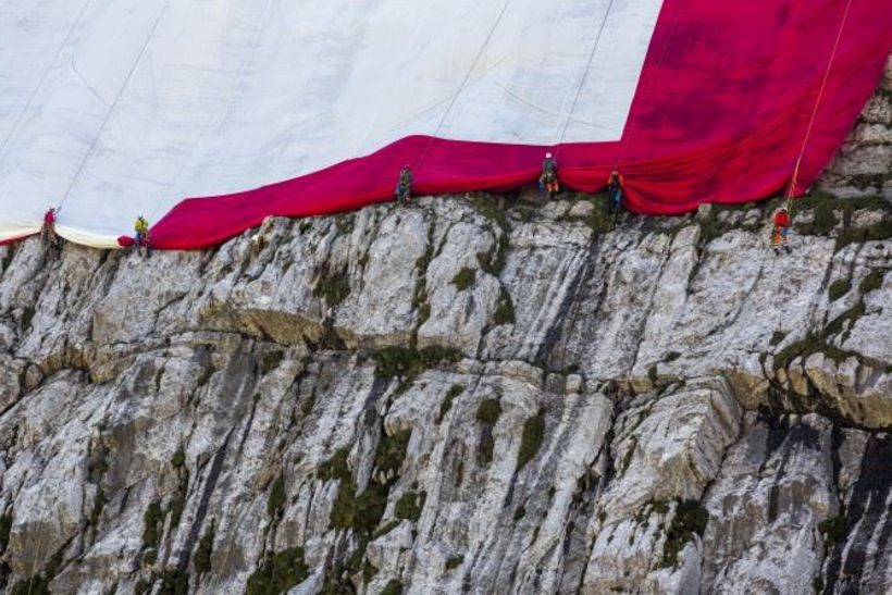 Ein kleiner Zwischenfall gab es allerdings: Beim Entrollen wurde die rund 700 kg schwere Fahne links aussen so beschädigt, dass die Felsarbeiter einen Teil einer Stoffbahn abnehmen mussten. Dieser Schranz sei laut Organisatoren aus der Ferne aber kaum sichtbar.