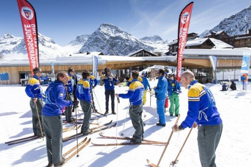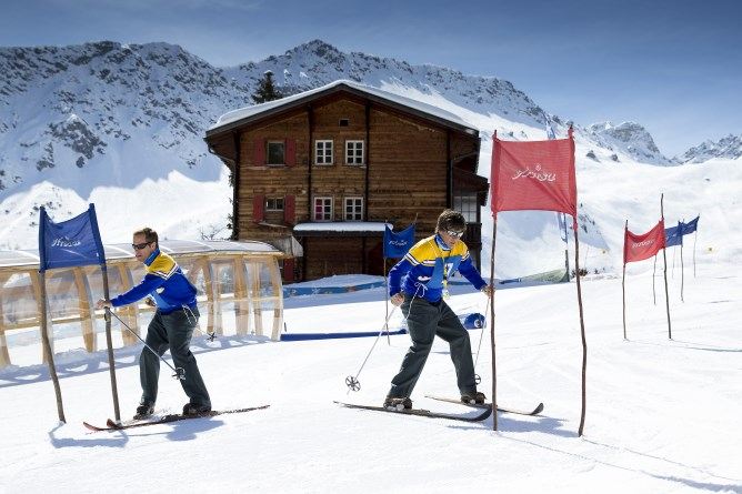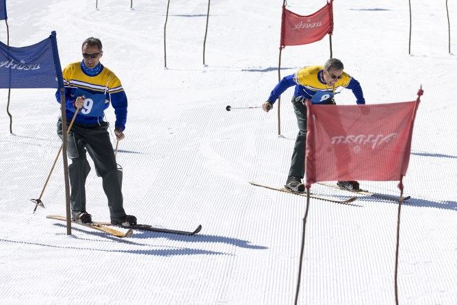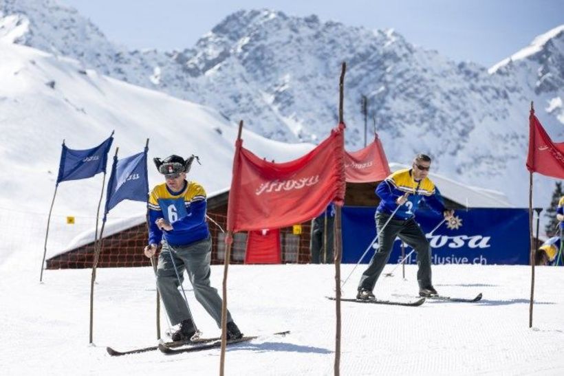 Eine Herausforderung für alle Teilnehmer war der nostalgische Parcours auf Holzskis. Globetrotter-Chef André Lüthi fuhr wie auf Schienen und Swiss Life CEO Bruno Pfister zeigte seine Langlaufkünste. Schlussendlich gewann Galledia CEO Pascal Schwarz.