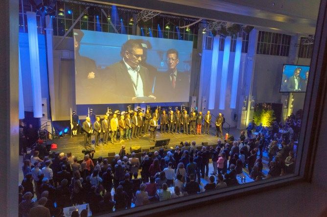 Rund 1700 geladenen Gästen aus Politik, Wirtschaft, Kultur und Gesellschaft fanden sich in den umgenutzten ehemaligen Hallen der BBC (nach der Fusion mit der schwedischen ASEA ab 1988 ABB) zur Feier ein. Stilecht und passend zum Motto: «Ready for take-off» empfing das Trafo-Team die gutgelaunten Gäste in Piloten-Uniformen.
