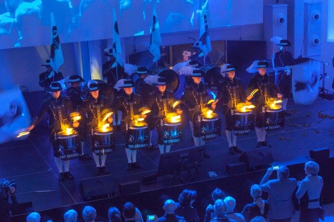 Nebst allerlei Köstlichkeiten wurde den Anwesenden beste Unterhaltung mit Artistik und Humor geboten. Dem ehemaligen Betriebsleiter der BBC-Trafo-Industriehallen Hans Werner kam die Ehre zu, das rote Band zu durchschneiden.