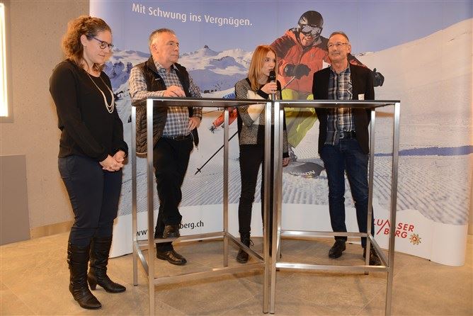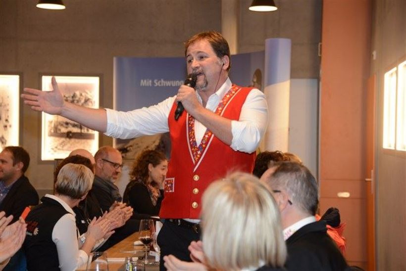 Heinrich Michel, CEO der BBF, und die Moderatorin Corinne Hofstetter begrüssten zum Abendprogramm unter dem diesjährigen Flumserberg-Motto «Flumserberg z ganzä Jour ä Schlager». Für Lacher sorgte der Komiker Stefan Roos.