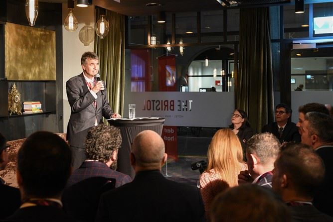 Am vergangenen Mittwoch luden Janine Rüfenacht und ihr Team Gäste aus der Berner Politik und Wirtschaft sowie Hoteliers und Touristiker ein. Zusammen mit Peter Strebel von der Liegenschaften-Betrieb AG, der Besitzerin vom «The Bristol», sowie Patrik Scherrer und Luzius Kuchen, Inhaber der Swiss Design Collection AG und zuständig für das Hotelmanagement, boten die Gastgeber ein Get-Together «very british». Dazu gehörten ein Rundgang im Haus, britische Comedy mit typisch schwarzem Humor, Tastings und Drinks sowie Smalltalks. (htr)
