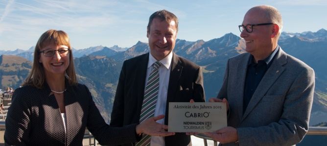 Mit 281 Stimmen durfte sich die Cabrio-Stanserhorn-Bahn über die Auszeichnung «Aktivität des Jahres 2015» freuen. Auf Platz 2 und 3 landeten die Luftseilbahn Dallenwil-Niederrickenbach mit 262 und die Zentralbahn mit 236 Stimmen.