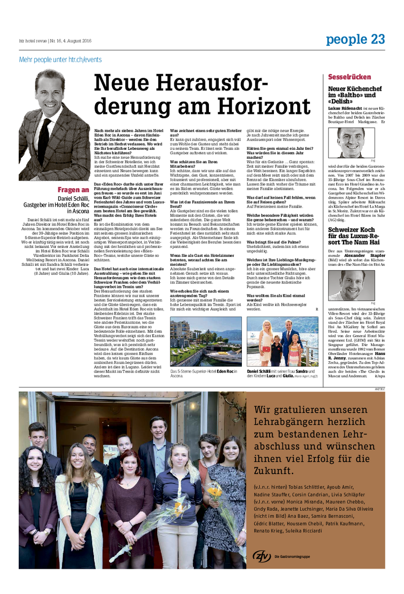 Lesen Sie dazu «Fragen an: Daniel Schälli» aus der htr hotel revue vom 4. August 2016.