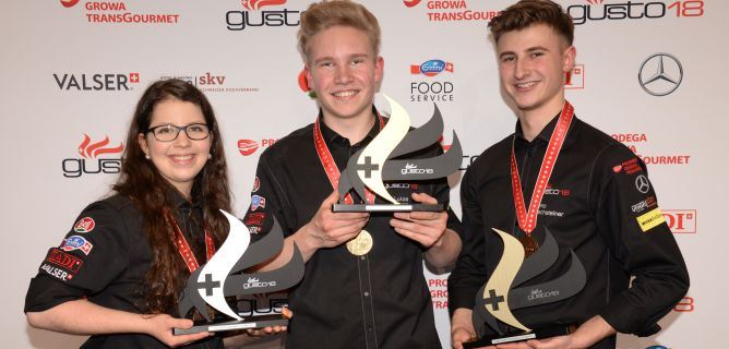 Der drittplatzierte Timo Rechsteiner vom Inselspital Bern (3. Platz) wiederum erkundet während einer Woche die Stadt Basel und das Dreiländereck inklusive Küchenbesuch bei Tanja Grandits im Restaurant Stucki in Basel. Alle rund 60 Teilnehmenden, die im Rahmen der «gusto18»-Ausschreibung ein Menü gemäss Wettbewerbsanforderung eingesandt hatten, erhalten ausserdem ein «Shun»-Messer von «Kai» sowie eine Menü-Rückerstattung in Form von Prodega/Growa-Einkaufsgutscheinen im Wert von 100 Franken.