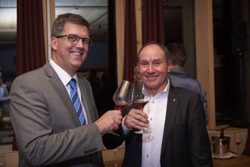 vrnl Niklaus Bleiker Landammann, Diego Bazzocco Direktor Jugendstil-Hotel Paxmontana vrnl Niklaus Bleiker Landammann, Diego Bazzocco Direktor Jugendstil-Hotel Paxmontana