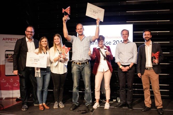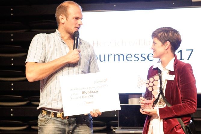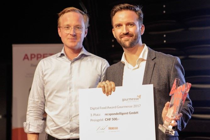 Zu denGewinnern des erstmals verliehenen «Digital Food Awards» zählen Bionär, ein Bauer, der digital sein Land verpachtet, Felfel mit digital-vernetztenKühlschränken mit gesundem Inhalt für Firmen, und Respondelligent, die Kundenbewertungen vonBewertungsplattformen sammeln und den Geschäftsinhabern digital zugänglich machen.