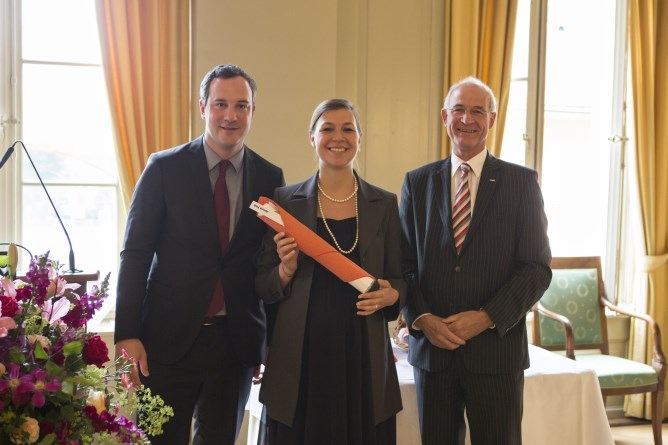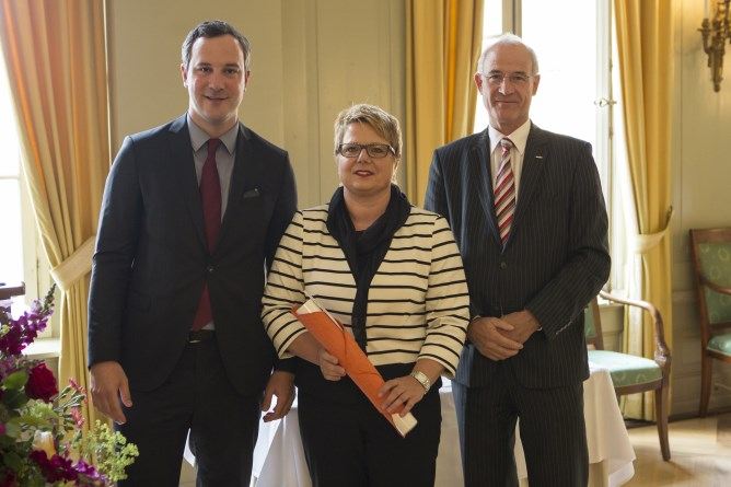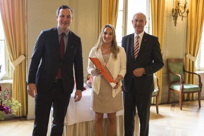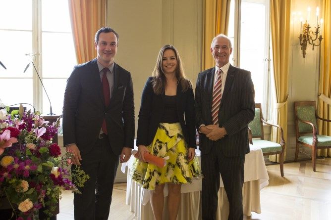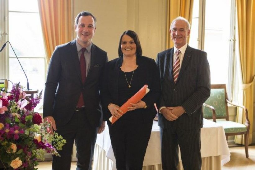 Vorbildlich war der Abschluss von Myriam Bolt, Vize-Direktorin Hotel Schweizerhof St. Moritz. Michael Bolt, CEO Hotela, überreichte ihr den Hotela-Preis für das beste Diplom. Für die beste Diplomarbeit erheilt Julia Diener vom Resort Bad Zurzach den Förderpreis der Stiftung Hans Schellenberg. (gsg/npa)