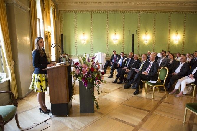 Eine Diplomfeier in würdigem Rahmen: Im Empire-Saal des Restaurants zum Äusseren Stand in Bern sei die erste Bernische Staatsverfassung unterzeichnet worden, begrüsste Daniel Plancic, Leiter Unternehmerbildung hotelleriesuisse, die 22 Absolventen des Nachdiplomstudiums HF Hotelmanagement.